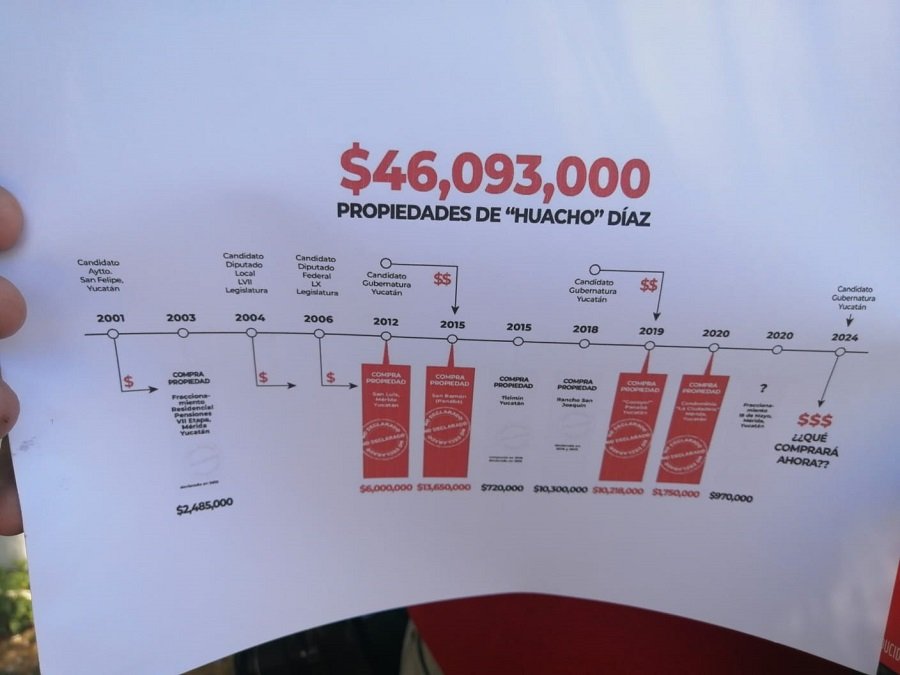 Por esa razón, decidió interponer una denuncia ante las autoridades encargadas de investigar, en este caso ante la Agencia de Investigación Patrimonial y Económica de la Fiscalía del Estado de Yucatán y ante la UIF del Gobierno Federal para que llamen a cuentas a Díaz Mena y explique cómo le hizo para hacer crecer su fortuna personal en tiempo récord.