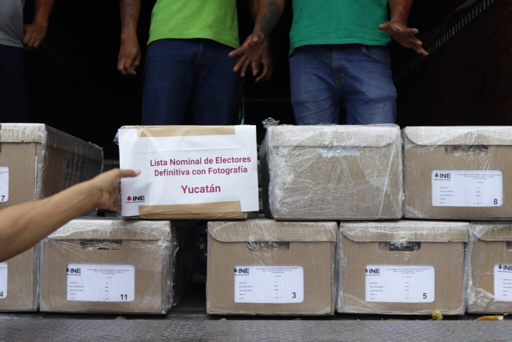 Llegaron empacadas en 96 cajas debidamente cerradas y se entregaron a los presidentes de los seis Consejos Distritales del INE en Yucatán, que el próximo 2 de mayo harán la entrega correspondiente a las representaciones de los partidos políticos.
