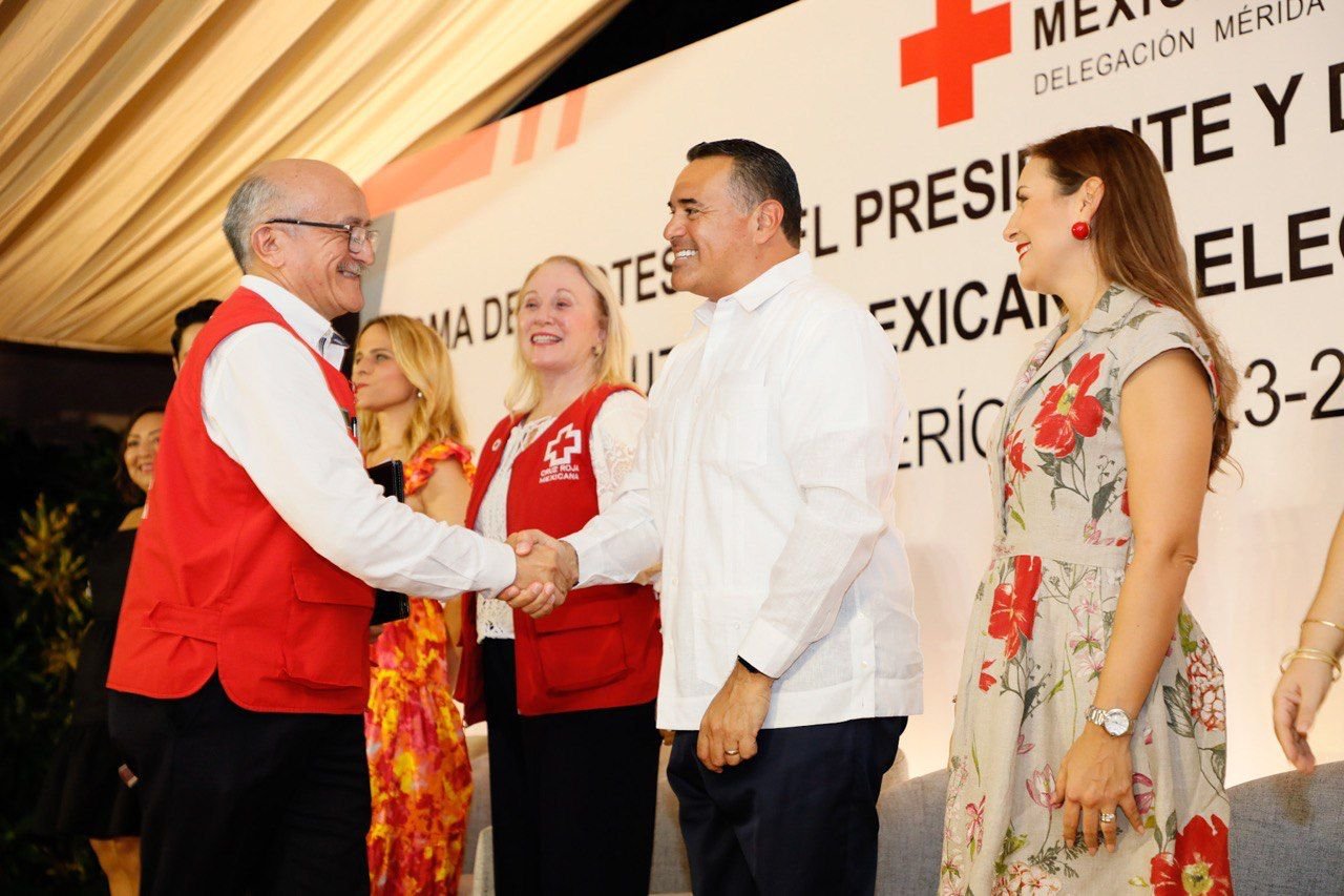 El nuevo Presidente de la Delegación Mérida de la Cruz Roja Mexicana, Mario Arturo Molina Esquivel, agradeció la confianza depositada en su equipo y destacó la labor de los médicos, enfermeras y socorristas como héroes anónimos que velan por la salud y el bienestar de quienes más lo necesitan.