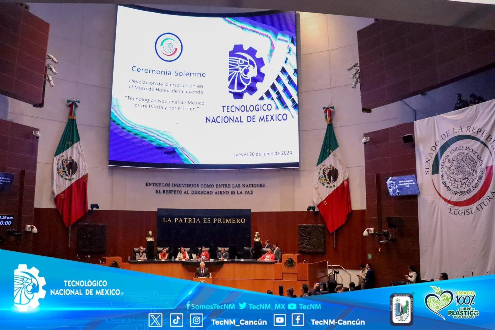 El memorable acto efectuado en el recinto del Senado de la RepΓΊblica, ante la presencia de la SecretarΓa de EducaciΓ³n PΓΊblica, Leticia RamΓrez Anaya, la presidenta de la Mesa directiva del Senado de nuestra naciΓ³n, Ana Lilia Rivera Rivera, el director General del #TecNM RamΓ³n JimΓ©nez LΓ³pez, y el senador Arturo del Carmen Moo Cahuich, autor de la propuesta para inscribir el nombre del #TecNM en el Muro de Honor, asΓ como distinguidos funcionarios del sector Educativo y del poder Legislativo.